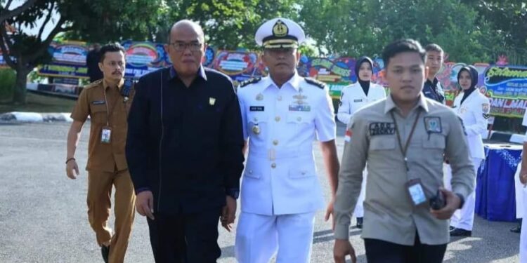 SARUMPUNNEWS.COM – Ketua DPRD Provinsi Sumatera Barat (Sumbar), Supardi menghadiri upacara Serah Terima Jabatan (Sertijab) Komandan Lantamal (Danlantamal) II Padang dari Laksamana Pertama TNI Benny Febri kepada Laksamana Pertama TNI Syufenri.