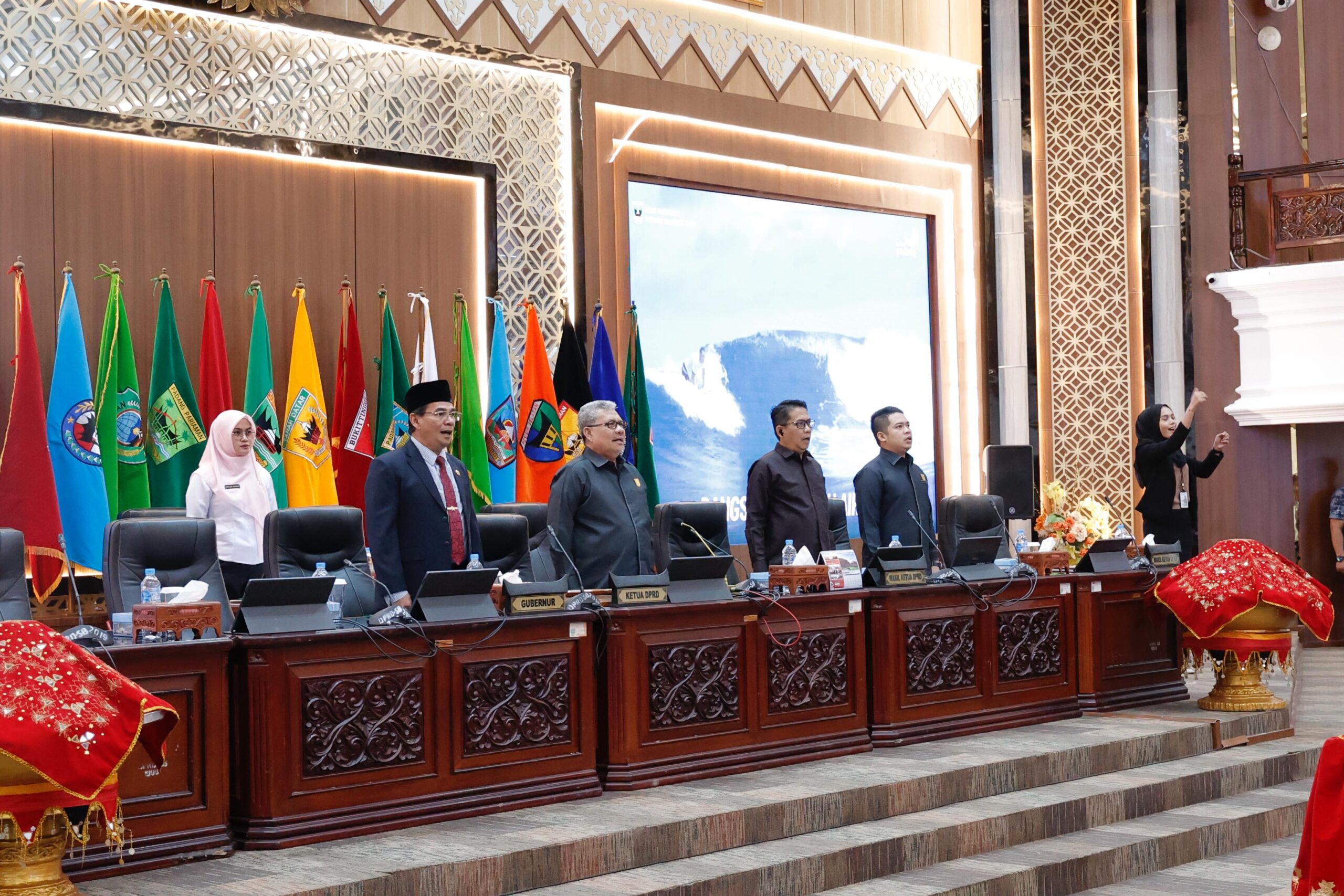 Rapat dipimpin Ketua DPRD Sumbar Muhidi didampingi wakil ketua DPRD Sumbar Evi Yandri, Nanda Satria, Iqra Chissa serta Pemprov Sumbar diwakili Plh Sekda Sumbar dan Anggota DPRD Sumbar.