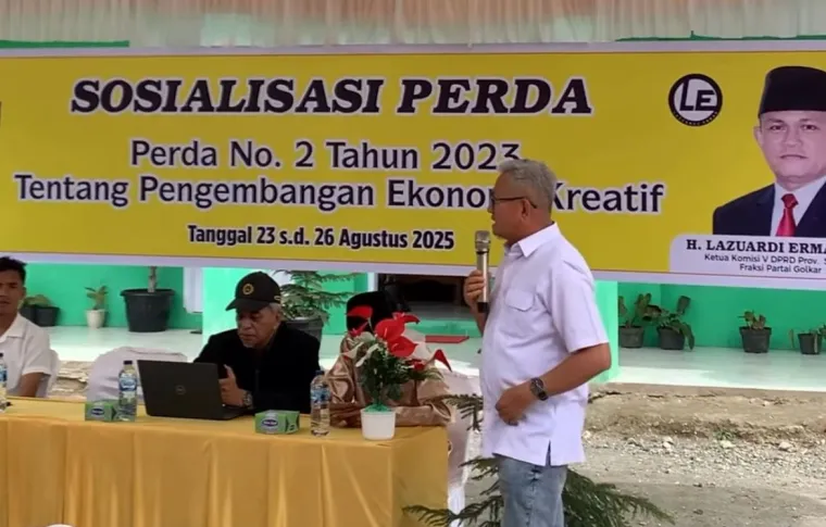 sarumpunnews.com– Anggota DPRD Sumbar, Lazuardi Erman melaksanakan Sosialisasi Peraturan Daerah (Sosperda) di Matur, Kabupaten Agam, Minggu (24/8/2025). Kegiatan ini mengangkat Perda No. 2 Tahun 2023 tentang pengembangan ekonomi kreatif.